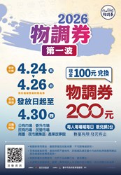 2026物調券第一波 臺中市政府經濟發展局 2026-04-13 「2026物調券第一波」活動即將開跑發放時間:4/24(五)-4/26(日)使用時間:4/24(五)-4/30(四)詳情請點選:https://www.economic.taichung.gov.tw/3248394/post