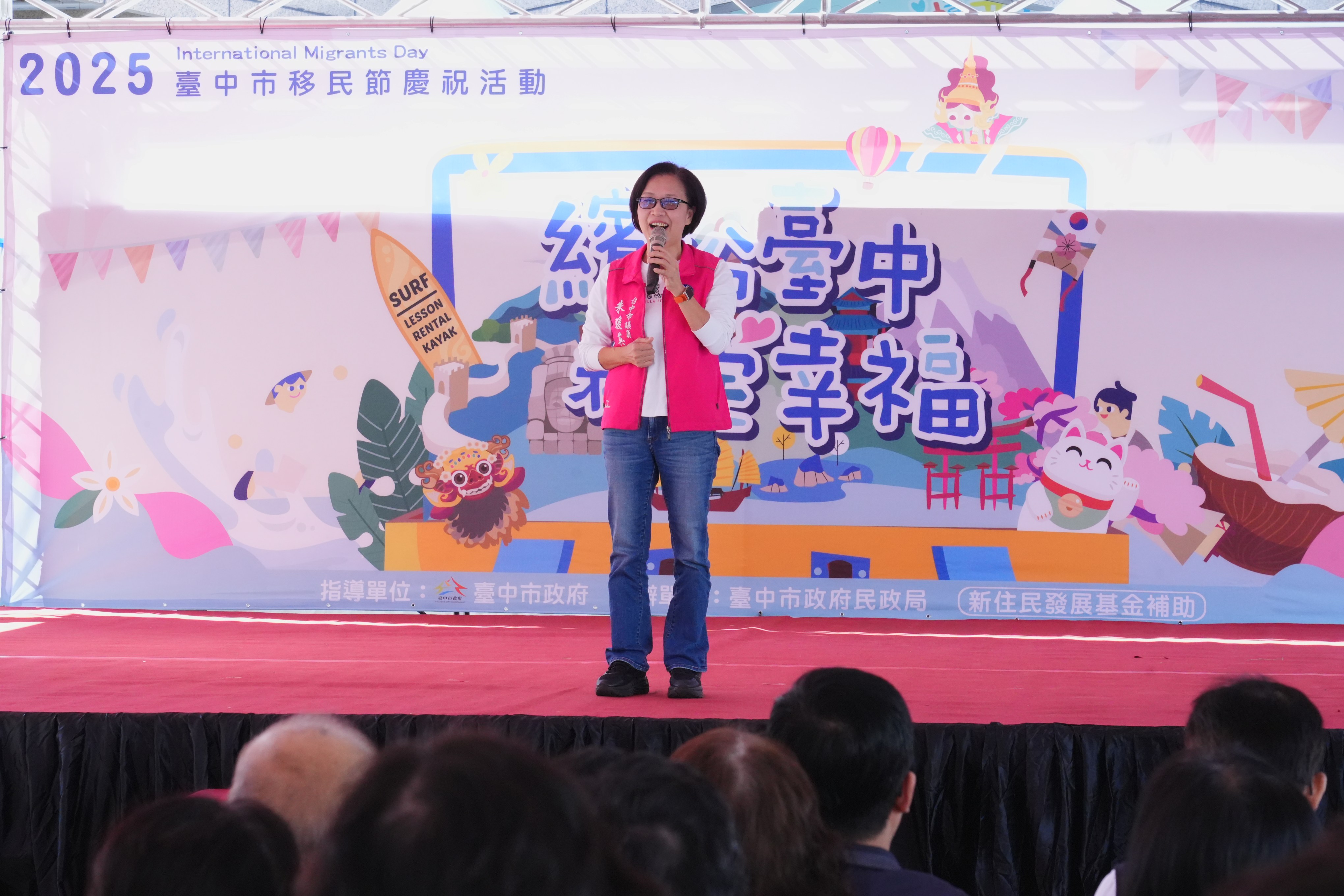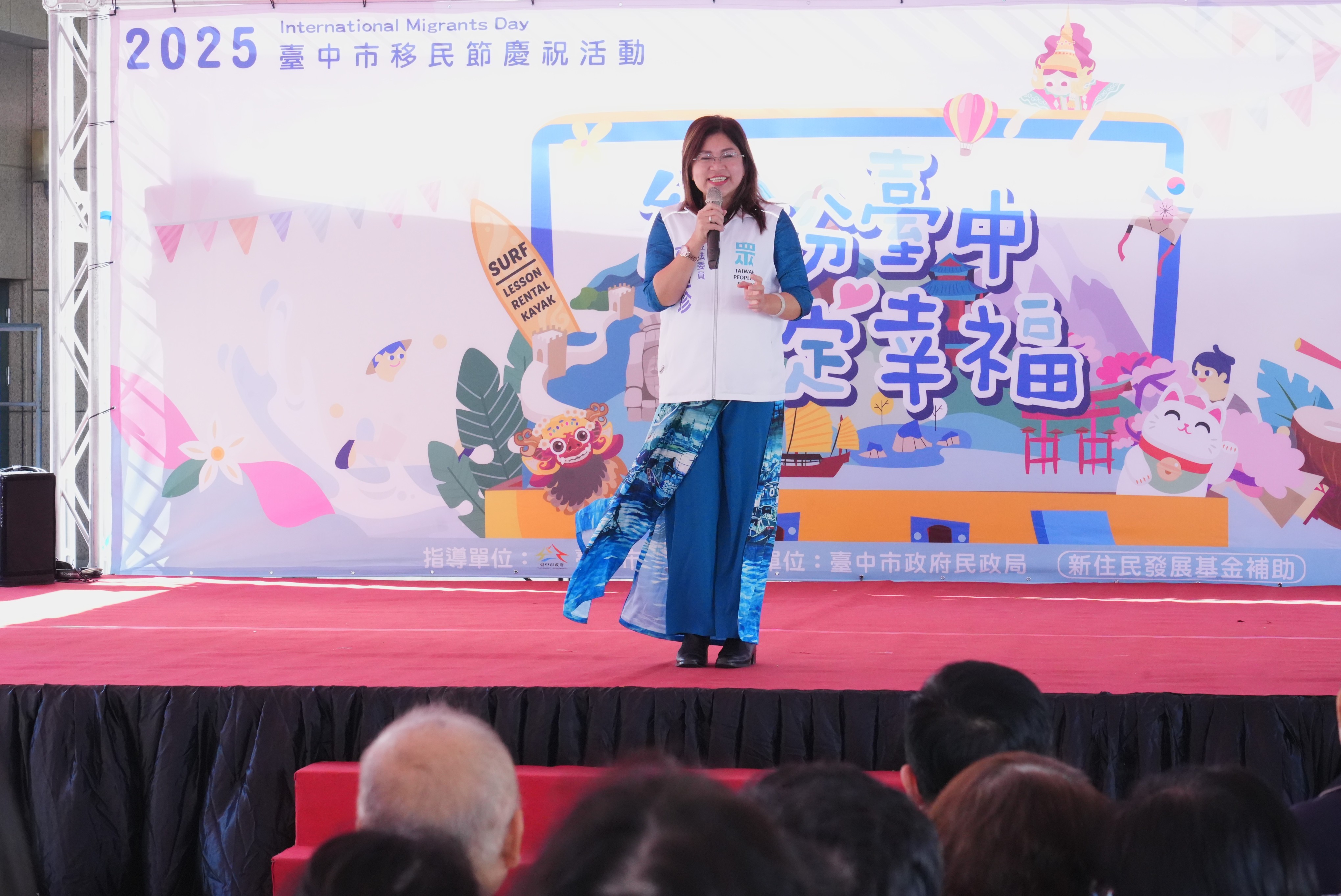 吳局長指出,隨著全球化加速發展,愈來愈多國際朋友選擇移居台中,根據內政部統計,目前台中新住民已超過6.5萬人,為台中社會、經濟與文化注入多元量能,形塑台中特有的城市風貌。市府也積極整合各局處資源,持續推動各項新住民生活適應與輔導措施,並透過節慶活動、家庭與團體支持方案及就業輔導計畫,協助新住民適應在台生活、提升就業與經濟能力,同時促進市民認識新住民多元文化,建構台中成為幸福「移」居的友善城市。