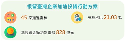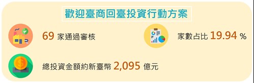 美中貿易戰因素改變國際市場及供應鏈生態,促使台商踴躍返台投資,經濟部為此提出「歡迎台商回台投資行動方案」予以貸款手續費補貼,後考量鼓勵在地企業及中小企業再提出「根留台灣企業加速投資行動方案」及「中小企業加速投資行動方案」,合稱投資台灣三大方案,而台中成為三大方案企業首選之地,通過件數仍穩居全國第一。