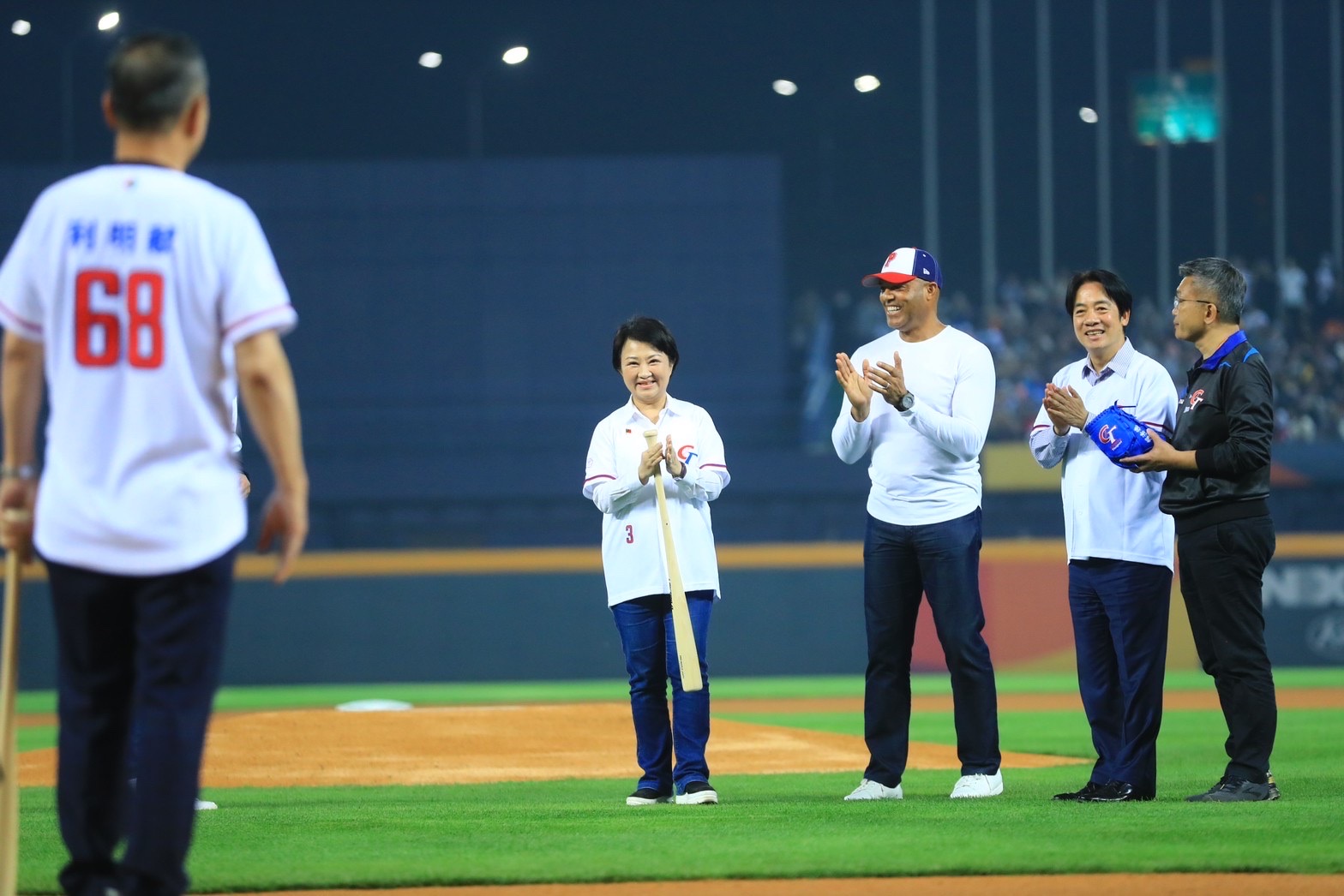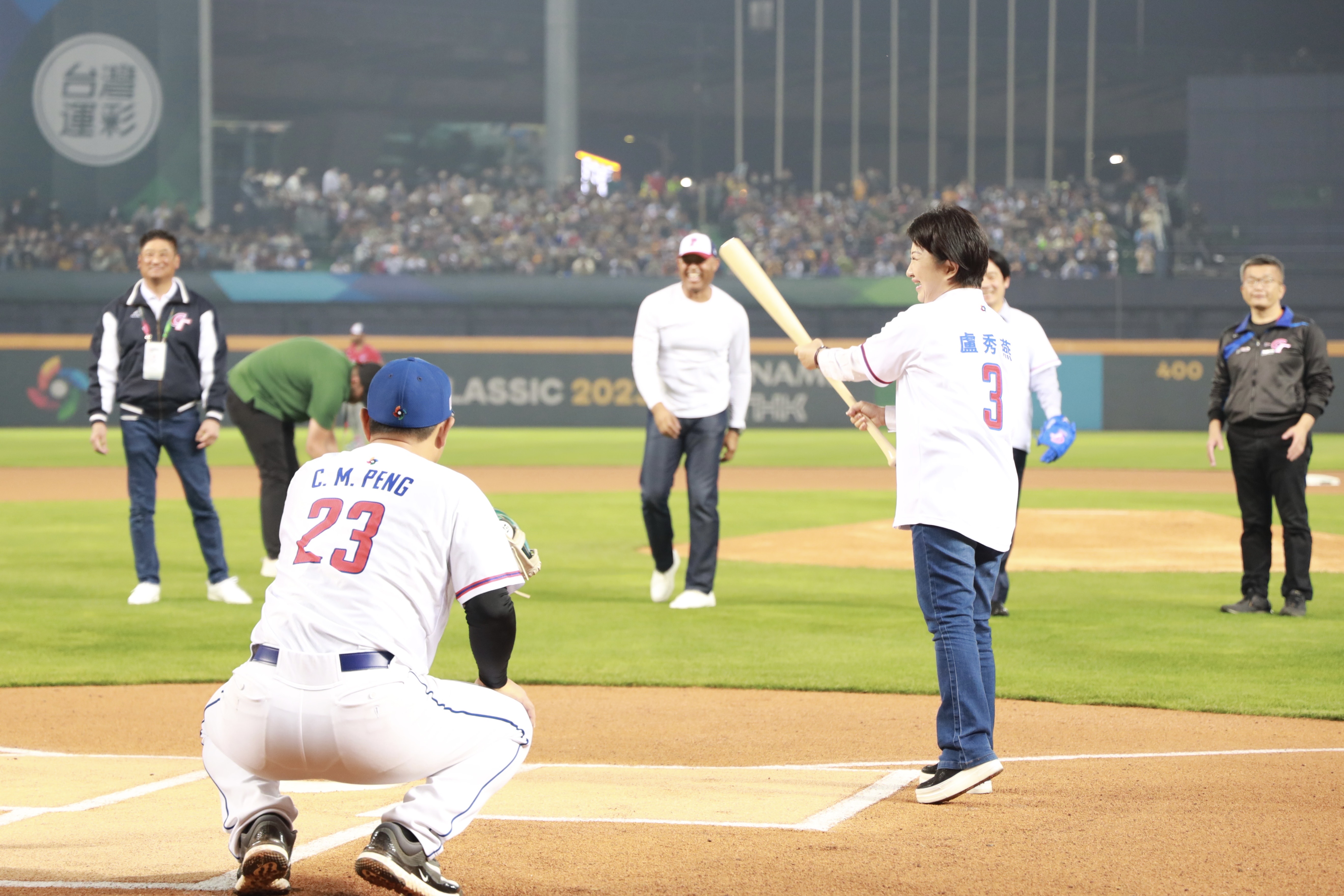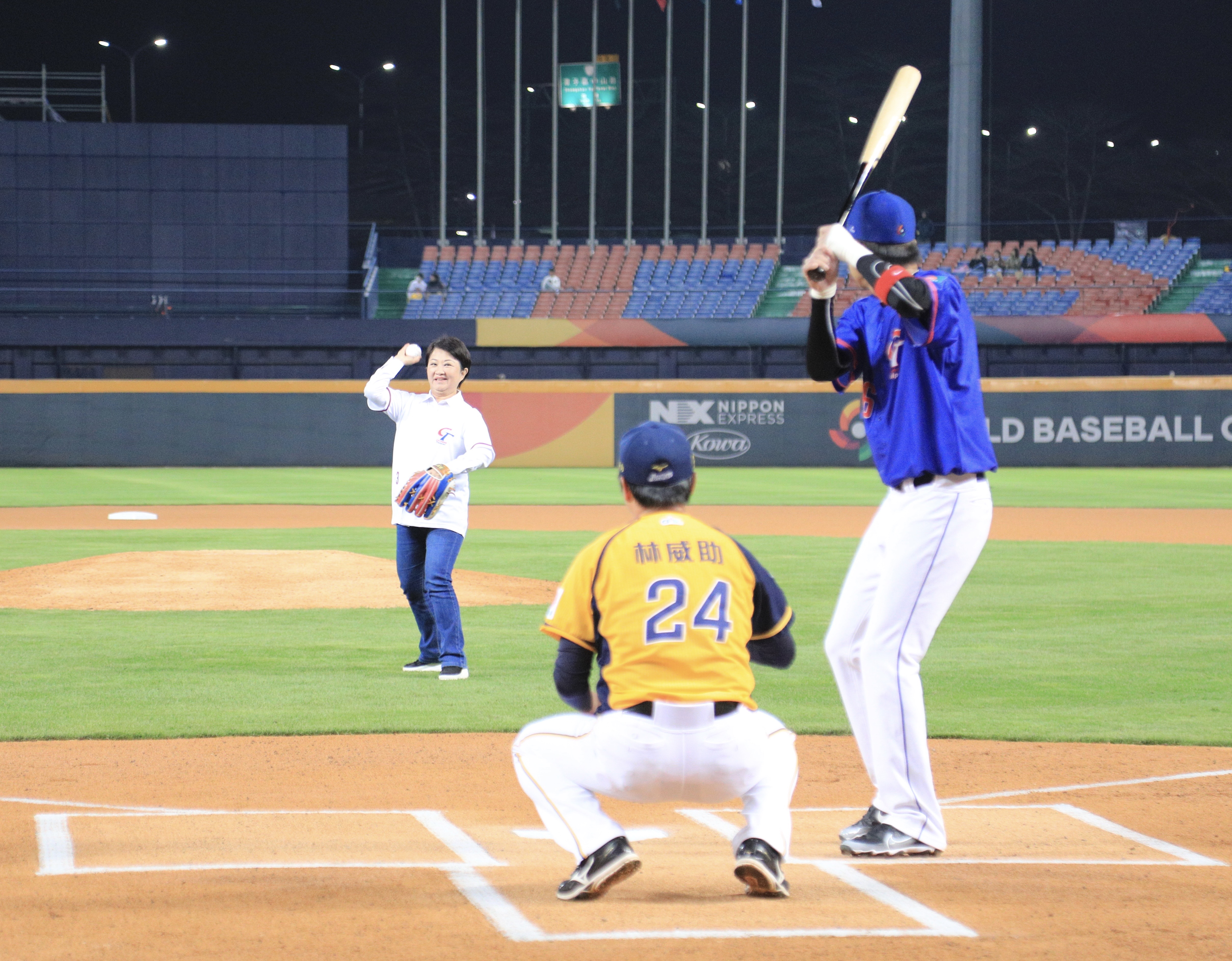 盧市長開球-中華隊隊長王威晨打擊-中信兄弟總教練林威助擔任捕手