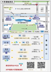 南下:下大雅系統交流道 (往潭子) →74快速道路→ 北屯一出口 → 直行環中路 → 左轉廣福路 → 左轉黎明路 → 抵達TICEC (地下停車場) 。 北上:下大雅交流道(往中清路) → 右轉環中路 → 左轉凱旋路 → 左轉黎明路 → 抵達TICEC (地下停車場) 。 |