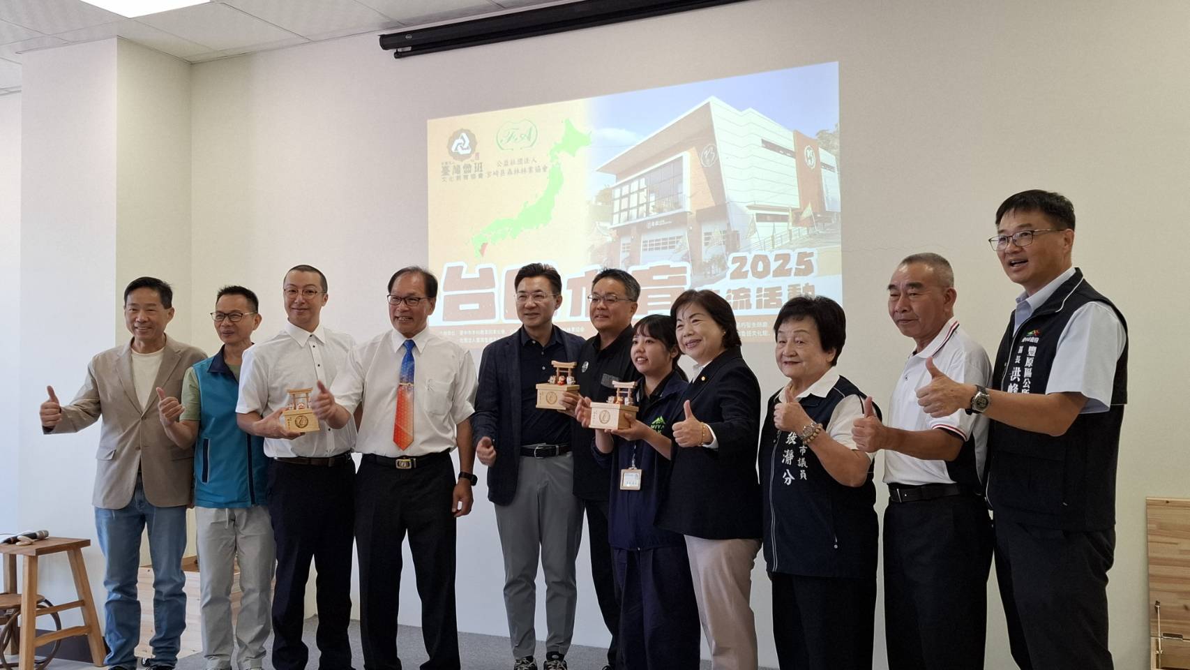 台中市木材商業同業公會 與 日本宮崎縣森林林業協會 於豐原魯班文化館共同舉辦「2025台日木育交流活動」,張峯源局長出席祝賀兩地木材產業與教育交流開啟新篇章