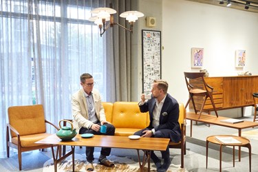 The journey continues beneath TRA Wuchuan Station at “HusFun Møbler- Nordic vintage furniture,” a design lover’s dream filled with vintage Scandinavian pieces. Lauri relaxes into the sofas and tests the chairs with professional familiarity, nodding in approval of someone who knows true Nordic style. “Simplicity is timeless,” he says—echoing the very heart of Nordic design philosophy.