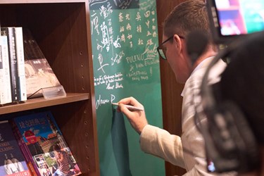 The group then heads to “Caffe forte” in the West District—an eclectic hideout packed with classic Western music records. It’s a perfect blend of international flair and local nostalgia. Here, Lauri leaves his mark—literally—by adding the café’s first-ever Finnish signature to its celebrity autograph wall. A small gesture, but a memorable symbol of international friendship.