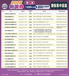 - 因應各場域營業時間不同,發放時間亦不盡相同,詳細資訊應以本局公告或各場域粉絲專頁發佈為準。