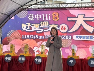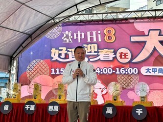 「台中Hi8 全城開趴」活動熱度持續攀升!自去年12月26日開跑,截至今年2月6日止,累積消費登錄金額已突破新台幣129億元。迎接農曆春節,台中市政府經濟發展局今(8)日在大甲商圈舉辦「台中Hi8 好運迎春在大甲」抽獎活動,由副市長鄭照新與現場貴賓共同抽出108萬元現金壓軸大獎,幸運得主為來自大雅區的陳先生。陳先生接獲中獎通知時特地停靠路邊接聽電話,開心表示將把獎金用來購買新車,為新年添喜氣。活動現場亦同步加碼線上抽出5名70吋電視得主,以及「台中通APP下載突破310萬」的機票獎項,掀起一波又一波歡呼聲。