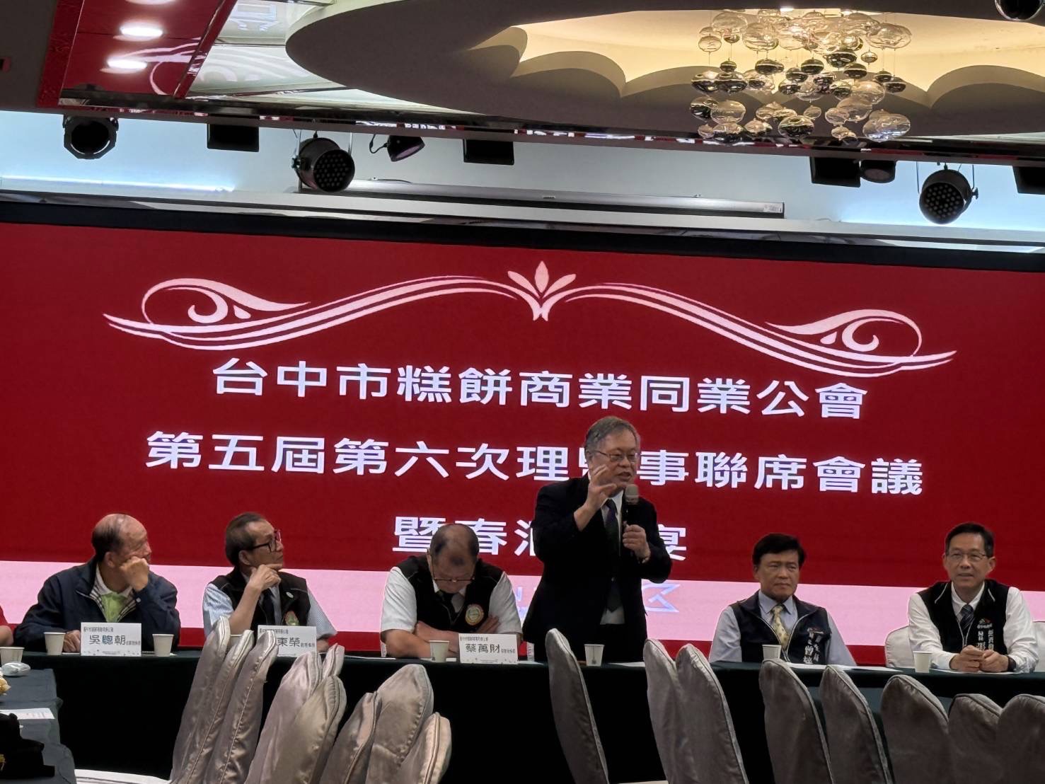 張局長致詞表示,感謝公會長期與市府攜手合作,無論是太陽餅文化節、各類展售活動,或國際食品展推廣,都充分展現臺中糕餅產業的深厚底蘊與創新能量;未來市府也將持續結合會展平台與節慶經濟,協助業者拓展國內外市場,提升品牌能見度與競爭力