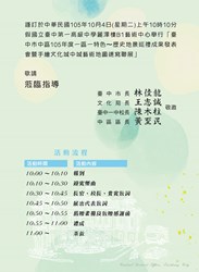 臺中市中區105年度一區一特色歷史地景巡禮成果發表會暨手繪文化城中城藝術地圖速寫聯展,自105年9月19日起於國立臺中一中及中區公所展出,邀您一起共襄盛舉!