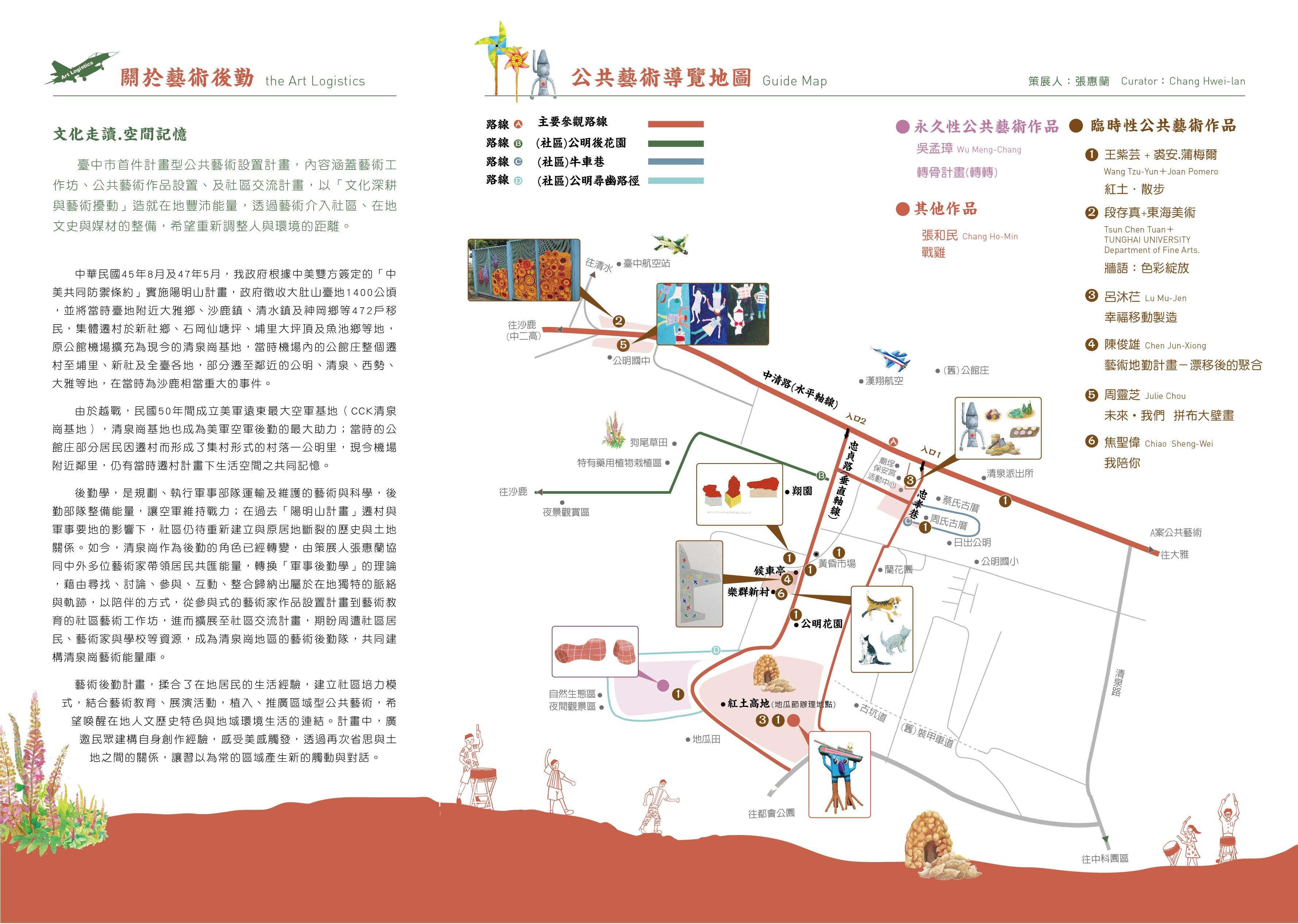 二、旨揭活動為臺中市首件計畫型公共藝術,將在清泉崗周邊社區盛大辦理,內容涵蓋空間裝置作品展、大型公共藝術集體創作、社區藝術工作坊成果展、論壇、演講、座談會及藝術導覽,敬邀民眾一起體驗和探索藝術,惠請協助於網站宣傳,並張貼文宣,文宣將於日後寄達。