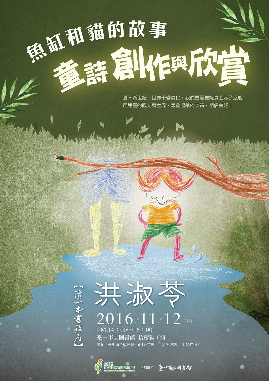 一、旨揭講座邀請台大中文系洪淑苓教授分享「魚缸和貓的故事--談童詩創作與欣賞」,帶領民眾透過日常生活題材,加上想像力及幽默感,寫出一首首可愛的童詩。