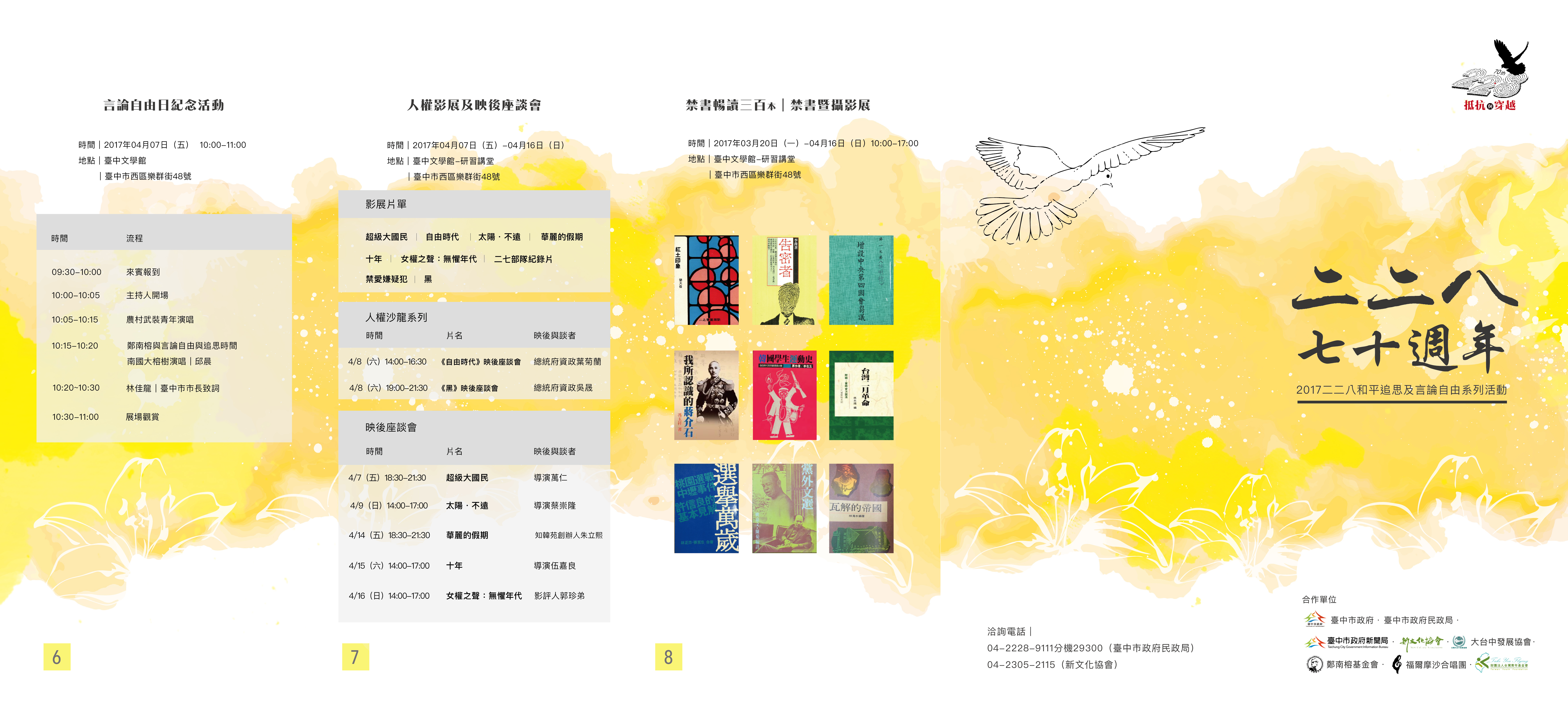 辦理二二八事件70週年暨言論自由日相關紀念活動,106年2月27日至4月16日規劃人權文化季系列活動。