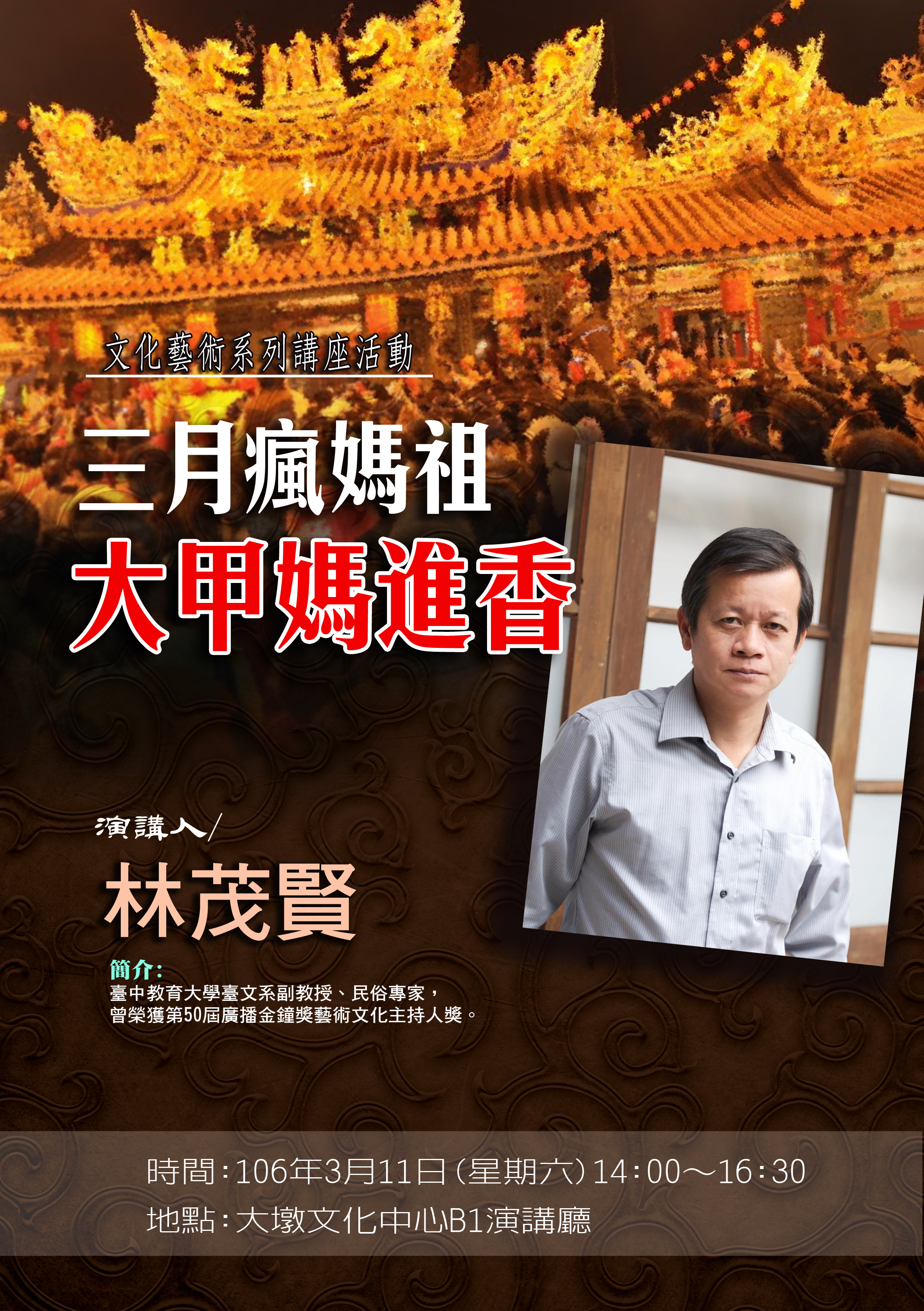 臺中市政府文化局大墩文化中心邀請林茂賢教授「三月瘋媽祖-大甲媽進香」講座