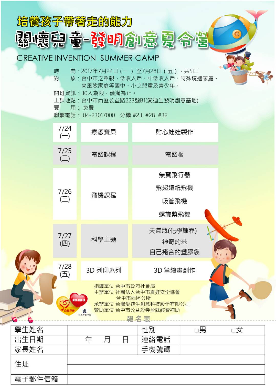 一、活動名稱:「關懷兒童-發明創意夏令營」