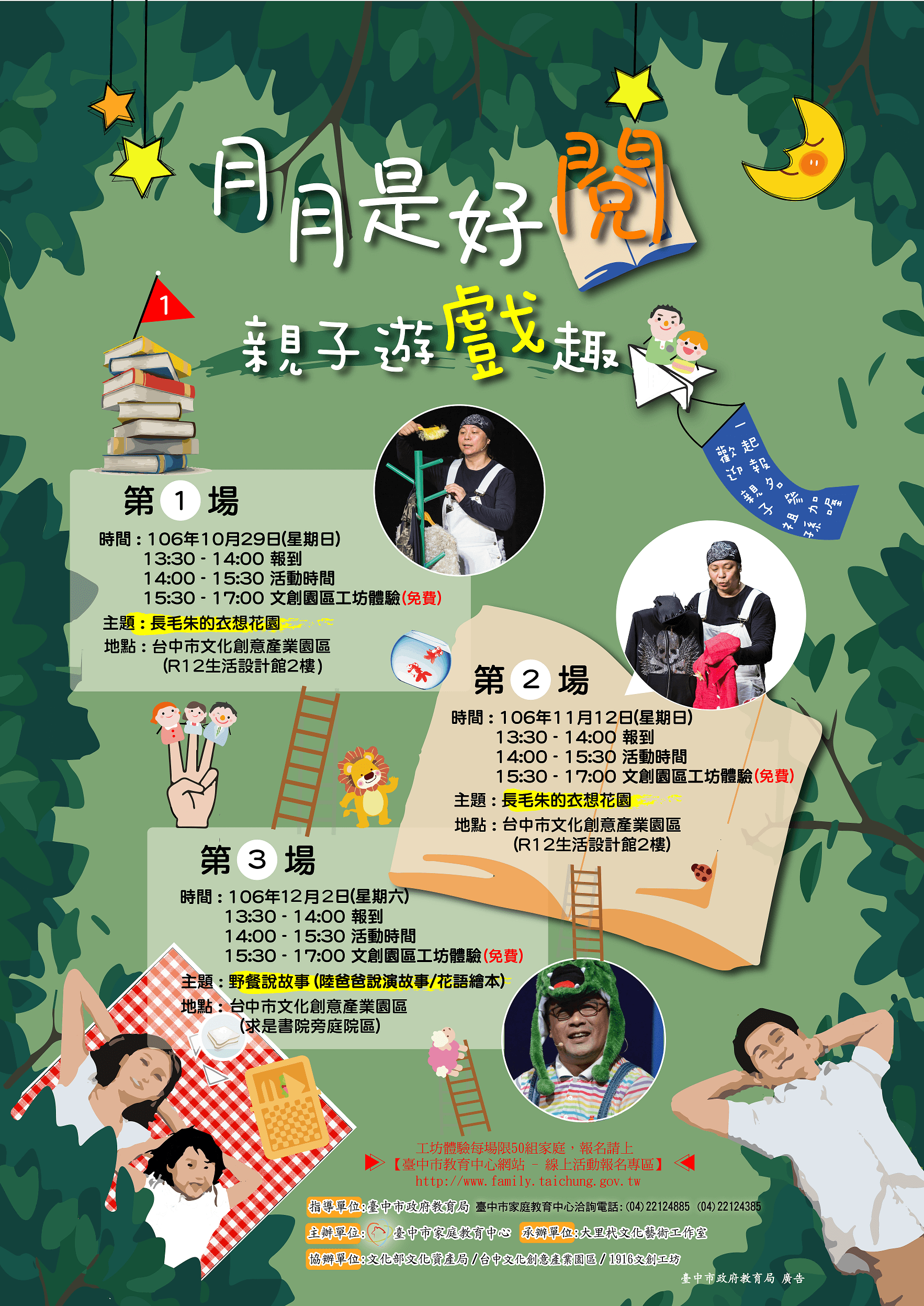 二、旨揭計畫規劃辦理3場次,活動內容包含說故事、戲劇表演及工坊體驗,場次活動時間及主題說明如下: